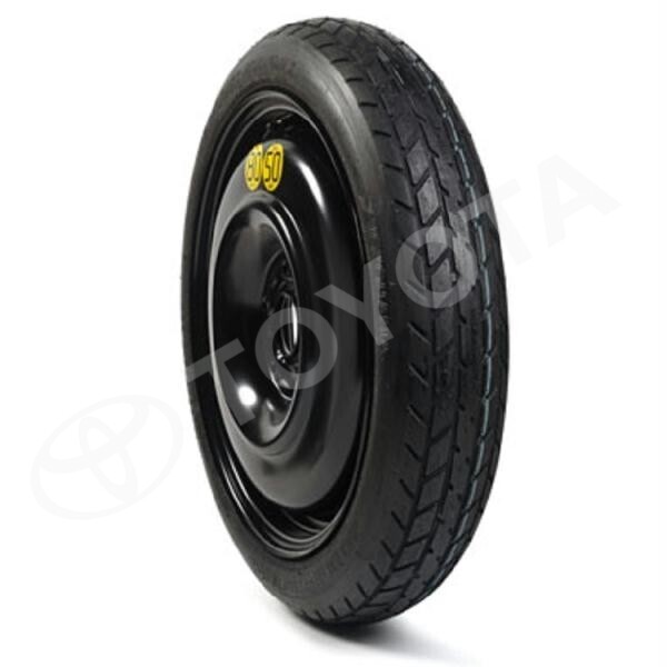 Zestaw koła dojazdowego przeznaczonego do modelu RAV4, na homologowanej oponie diagonalnej 165/90 D18 Yokohama. Zestaw zawiera koło kompletne oraz pozostałe elementy montażowe.