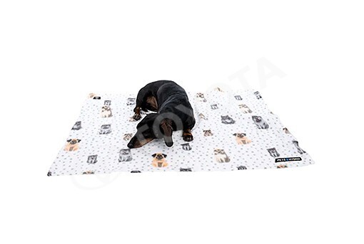 Kolorowy wzór w kropki i sylwetki psów ożywia całość. Koc doskonale nadaje się do transporterów, legowisk i koszy, ale równie dobrze sprawdzi się jako ochrona tapicerki meblowej lub foteli samochodowych.